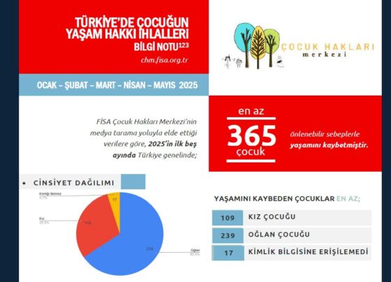FİSA Çocuk Hakları Merkezi’nin medya tarama yoluyla elde ettiği verilerine göre, 2025’in ilk beş ayında Türkiye’de en az 365 çocuk…